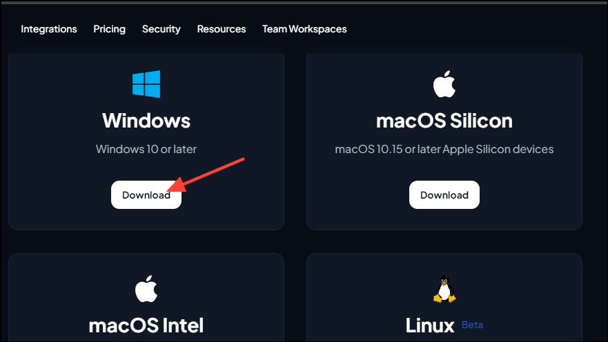- First, visit the Curiosity AI download page and click on the 'Download' button for Windows. The tool is also available for macOS and Linux.
