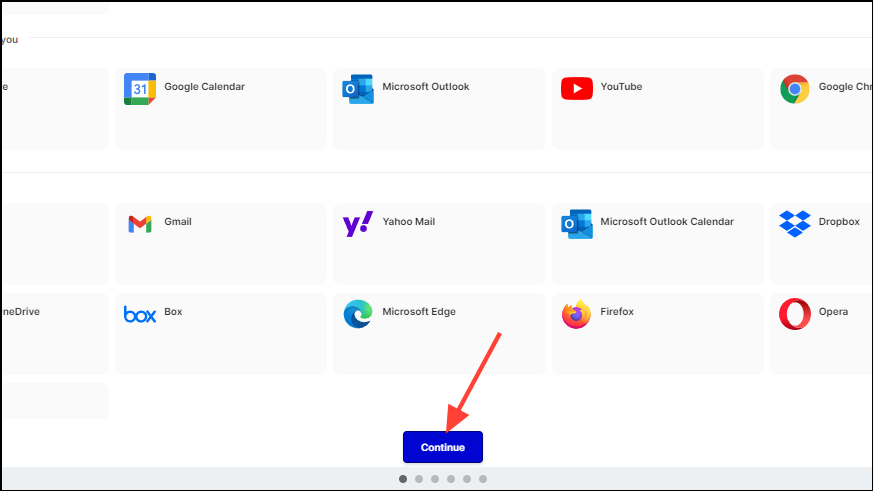 - In the same manner, you can connect other apps, including Microsoft Outlook, Google Calendar, YouTube, and many more. Once you've connected the ones you want, click on the 'Continue' button.