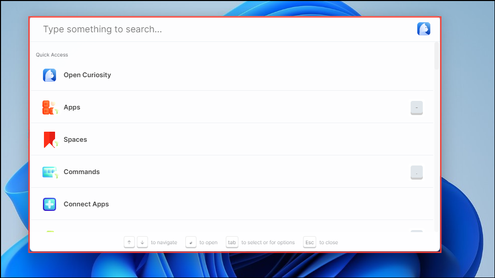 - Close this window and now you can launch Curiosity AI from anywhere using the