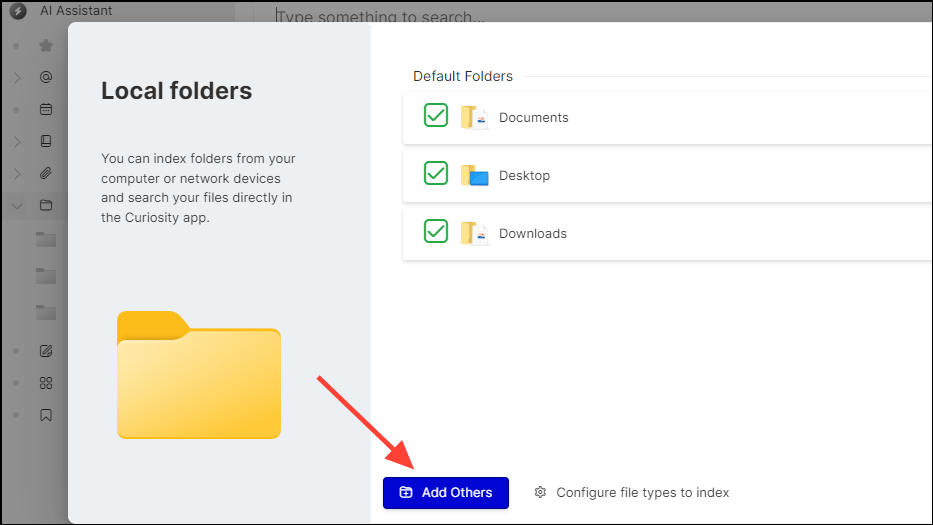 - You can customize Curiosity AI in various ways to suit your needs. For instance, you can change the languages and themes, control how much storage it uses, and even exclude files and programs that can be searched.