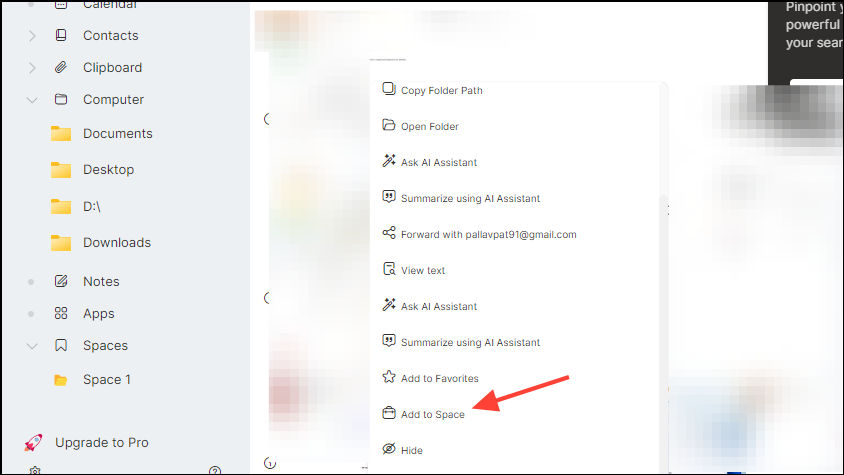 - The Space you create will appear on the left under the 'Spaces' menu. To add items to it, simply drag and drop them into the Space. Alternatively, right-click on the item and click on 'Add to Space'.