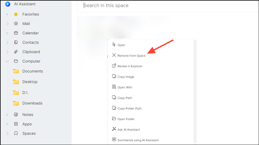 - You can remove items from a Space in the same manner by opening the Space, right-clicking on the item, and clicking on 'Remove from Space'.