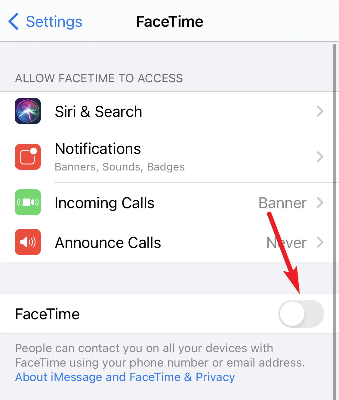 FaceTime might be Apple’s system app, but you need to turn it on to be able to use it. Go to your iPhone Settings app, and scroll down until you find FaceTime. Tap on it to open it.