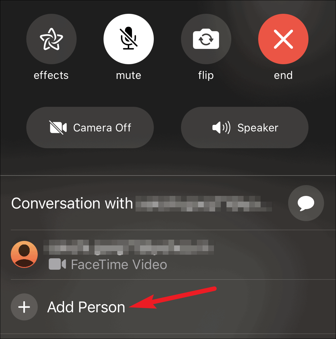 You can also have group calls on FaceTime. Select multiple contacts from the FaceTime app while making a call. Or you can add more persons to a call while you’re in the call. Swipe up on the screen, and a few options will appear.