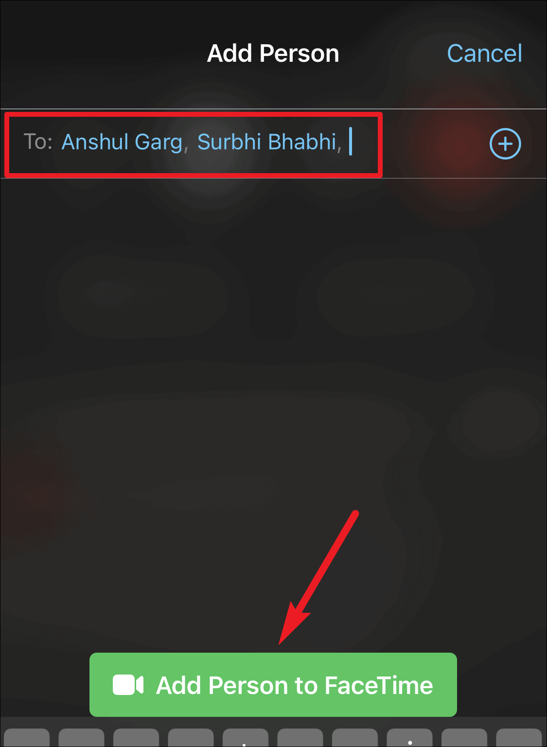Then, start typing the contacts or numbers you want to add to the call in the ‘To’ textbox and tap the ‘Add Person to FaceTime’ button. You can have up to 32 people on a single FaceTime call.