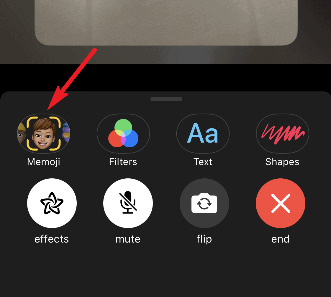 When on a FaceTime video call, you can also Memojis that work in real-time. While on a call, tap the ‘Effects’ button.