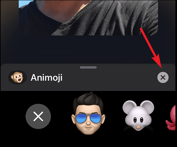 Tap the ‘None’ option (bigger cross) to remove the Memoji and then return to the call without any effects.