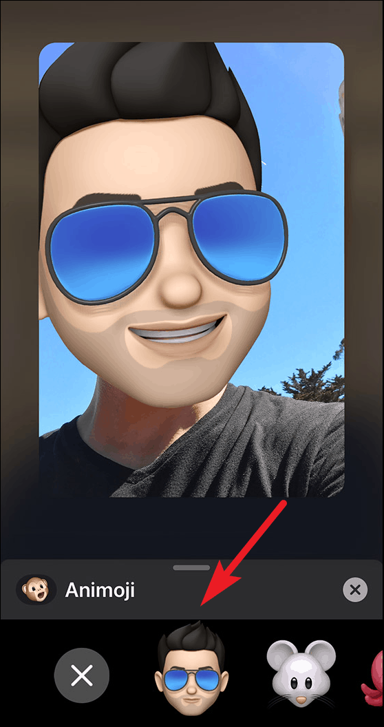To return to the call with the Memoji, tap the smaller ‘x’ on the right of the Memoji toolbar and exit the effects menu.