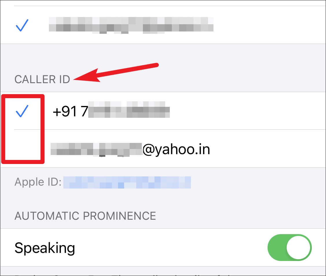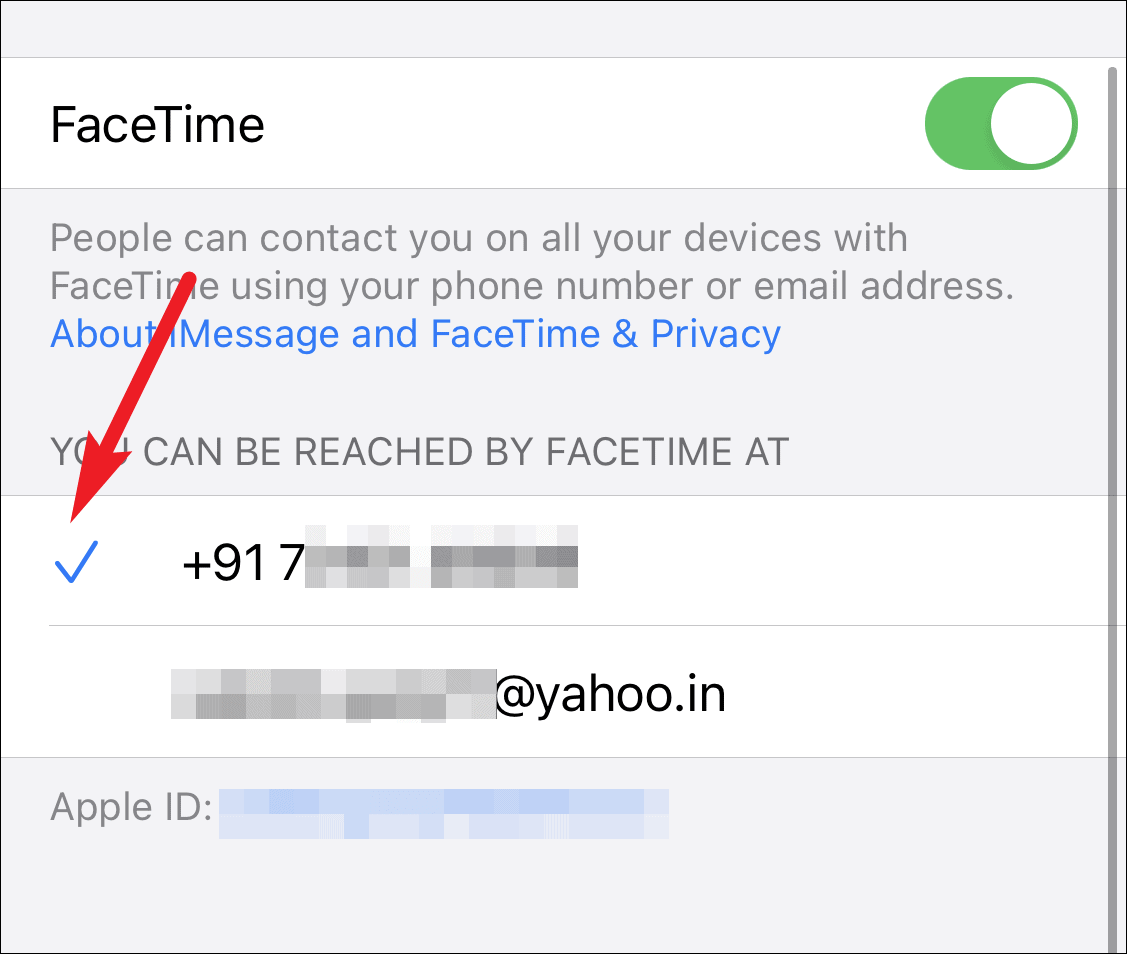 Here, you can also select what will be your Caller ID, i.e., whether your number or Apple ID will be displayed when you call someone using FaceTime. Tap on the option to select it.