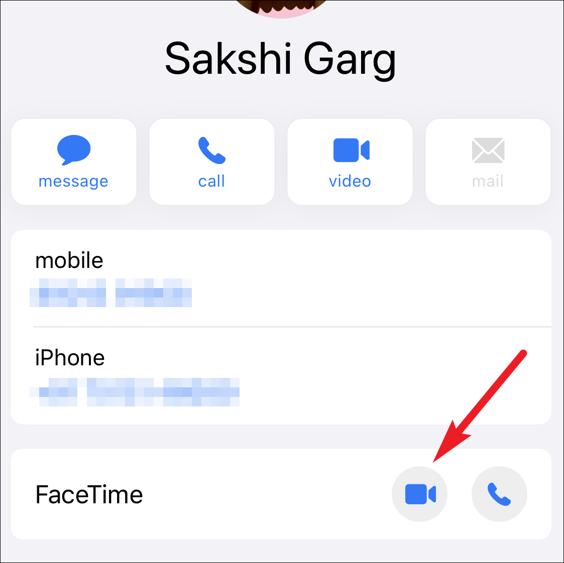 You can also make a FaceTime call from the Phone app if the number or Apple ID is saved in your contacts. Go to the Phone app and search for the contact you want to call. Open it, and there you’ll see the option for ‘FaceTime’. Tap the phone or video camera icon to make an audio or video call respectively.