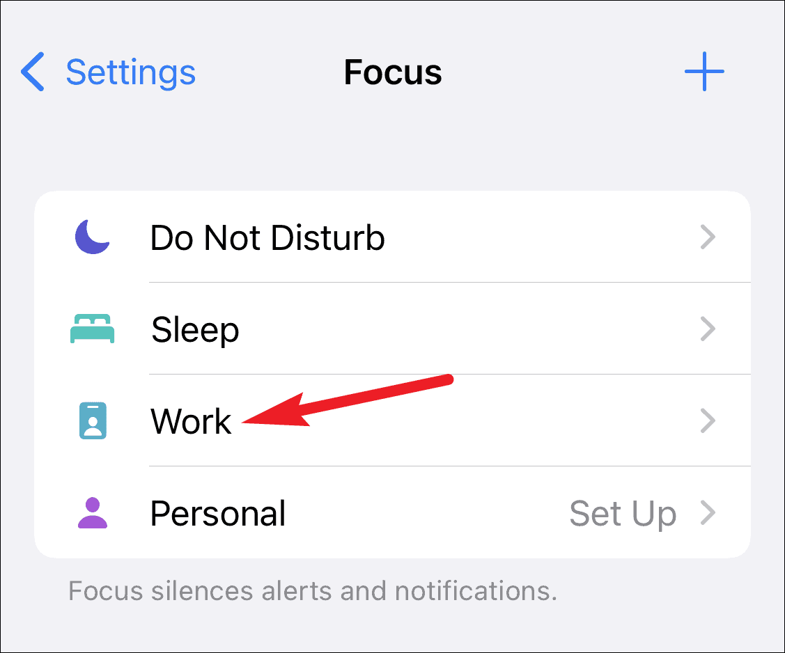 When using this method, you have to disable Focus Status for each of your setup modes individually. It’s perfect if you only want to turn off the setting for some modes while keeping it on for others. In this guide, for instance, we turned off Focus Status for the ‘Work’ Focus Mode, so it’ll still stay on for other Focus Modes.
