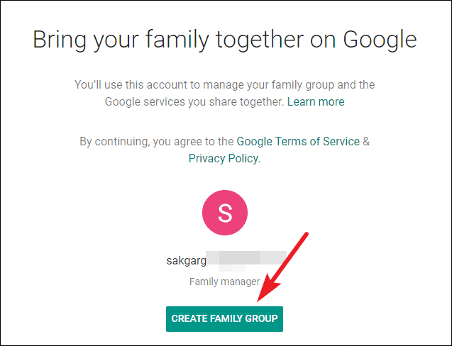 Then, click the ‘Create Family Group’ button to create the group.