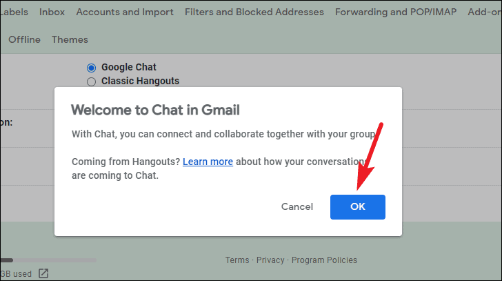 In Chat, select ‘Google Chat’ instead of ‘Classic Hangouts’.