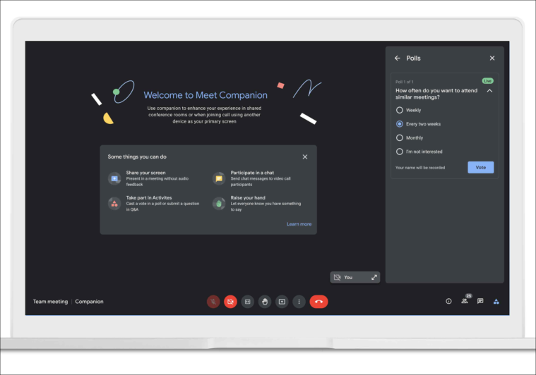 Google is also soon going to launch Companion mode in Google Meet to foster collaboration equity in a hybrid workplace. It’s for organizations where few people are in a conference room while connecting with others remotely.