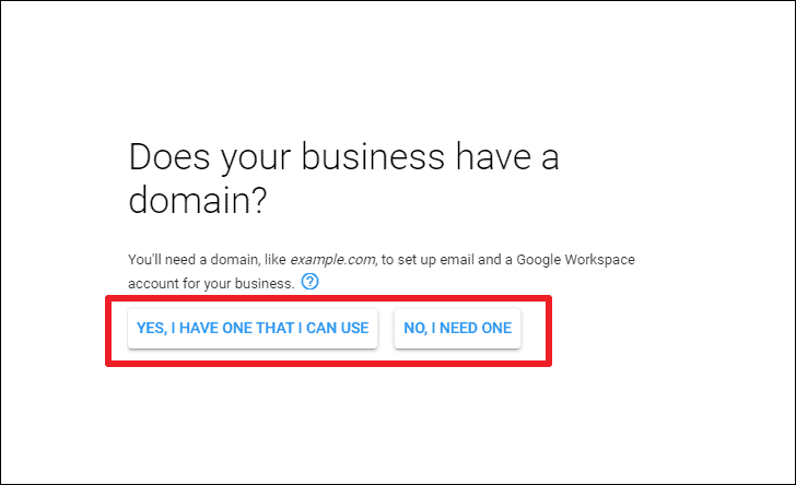 Now, you have to choose whether or not you have a domain. If you have one, click the ‘No, I have one’ option and you can enter the domain you already own and use it. You’ll have to verify that you own this domain before you can actually start using it. Otherwise, you can buy one using Google Domains. Click the ‘Yes, I have one that I can use’ option. If you don’t have a domain, you can also buy it from somewhere else instead of Google Domains, but when you buy it through Google, you won’t have to go through the verification process.