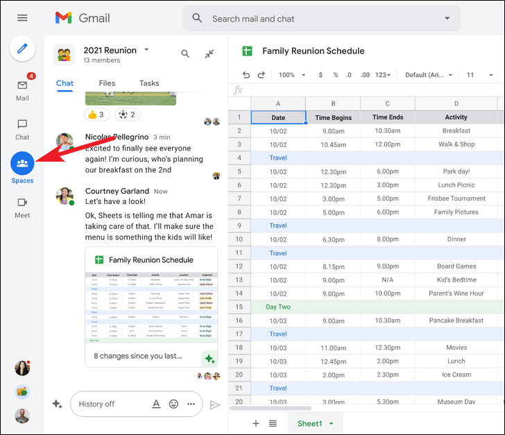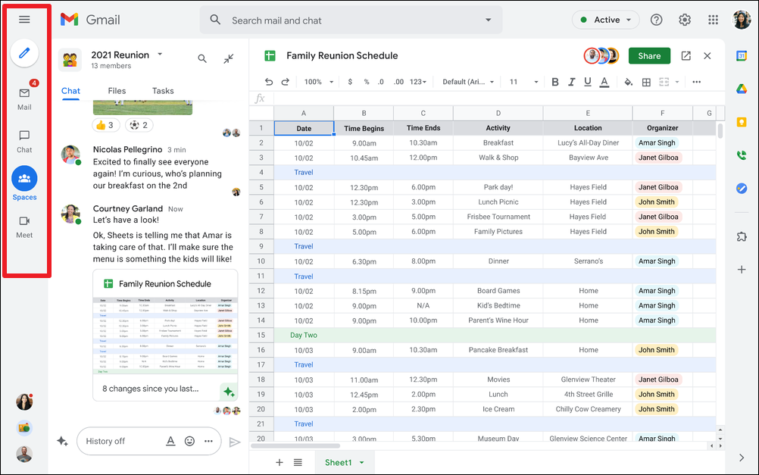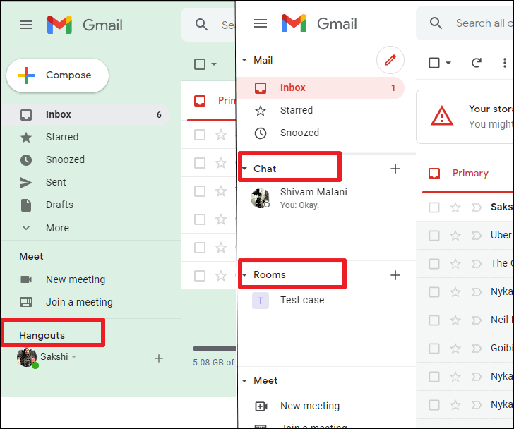 To enable this Google Workspace experience for your Google account, you need to activate Google Chat. Once you activate Google Chat, it will replace Google Hangouts, and the Chat and Rooms will be integrated into Gmail.