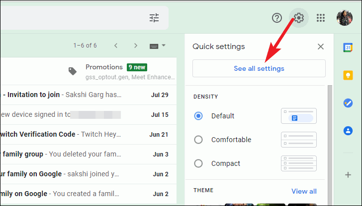 A quick settings panel will appear on the right. Click ‘See all settings’.