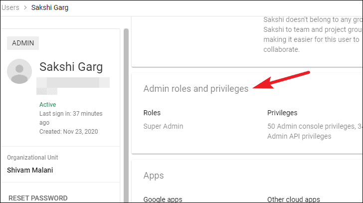 Their account page will open. Scroll down and click the option for ‘Admin roles and privileges’.