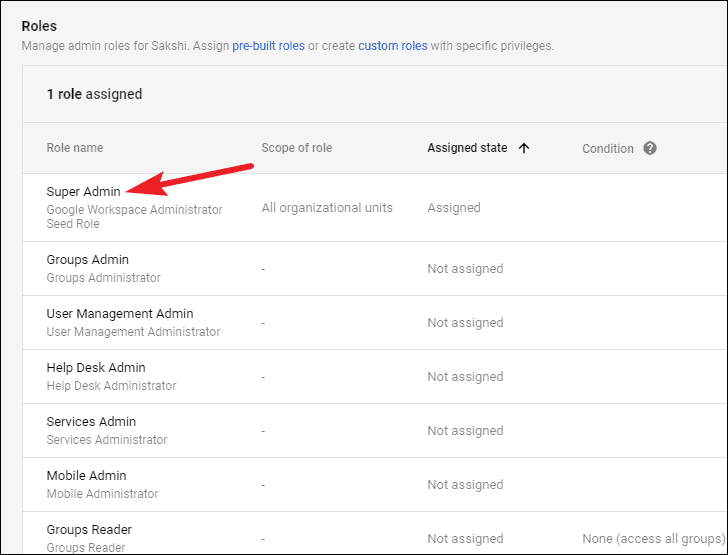 Then, click the option for the ‘Super Admin’ role.