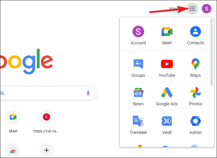To access the apps available for your Google Worskapce account, go to the ‘Google Apps’ menu icon from any Google service. The menu will list all the apps available for your use.