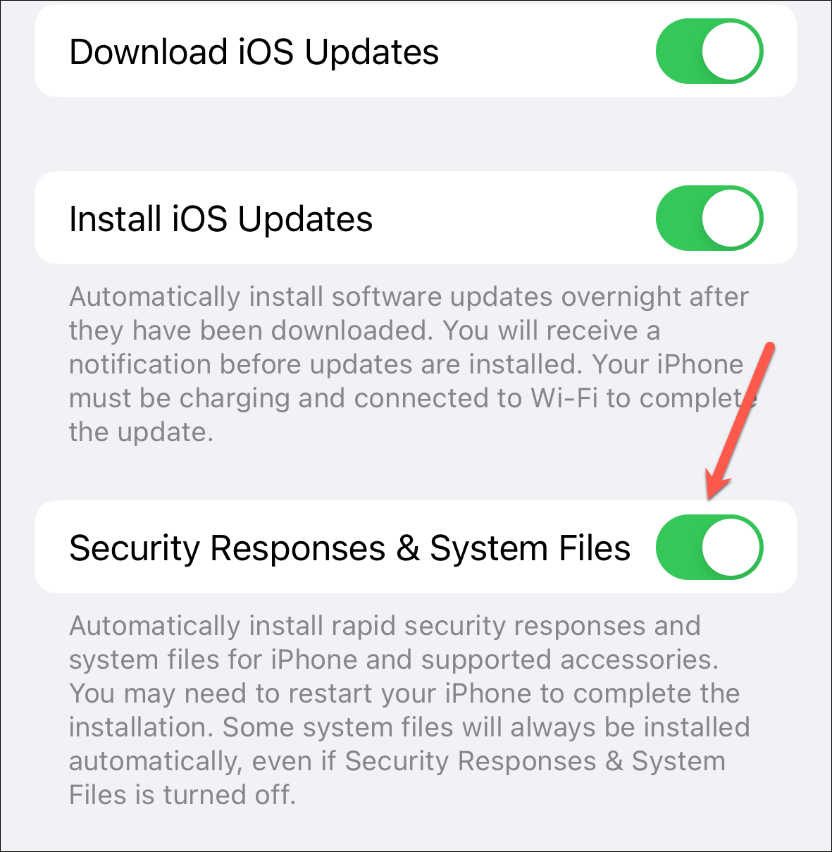 Finally, make sure that the toggle for the 'Security Responses & System Files' option is turned on.