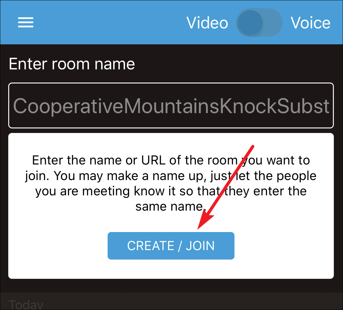 Step 3: On the main screen, tap on the textbox labeled 'Enter room name' and type a unique name for your meeting room.
