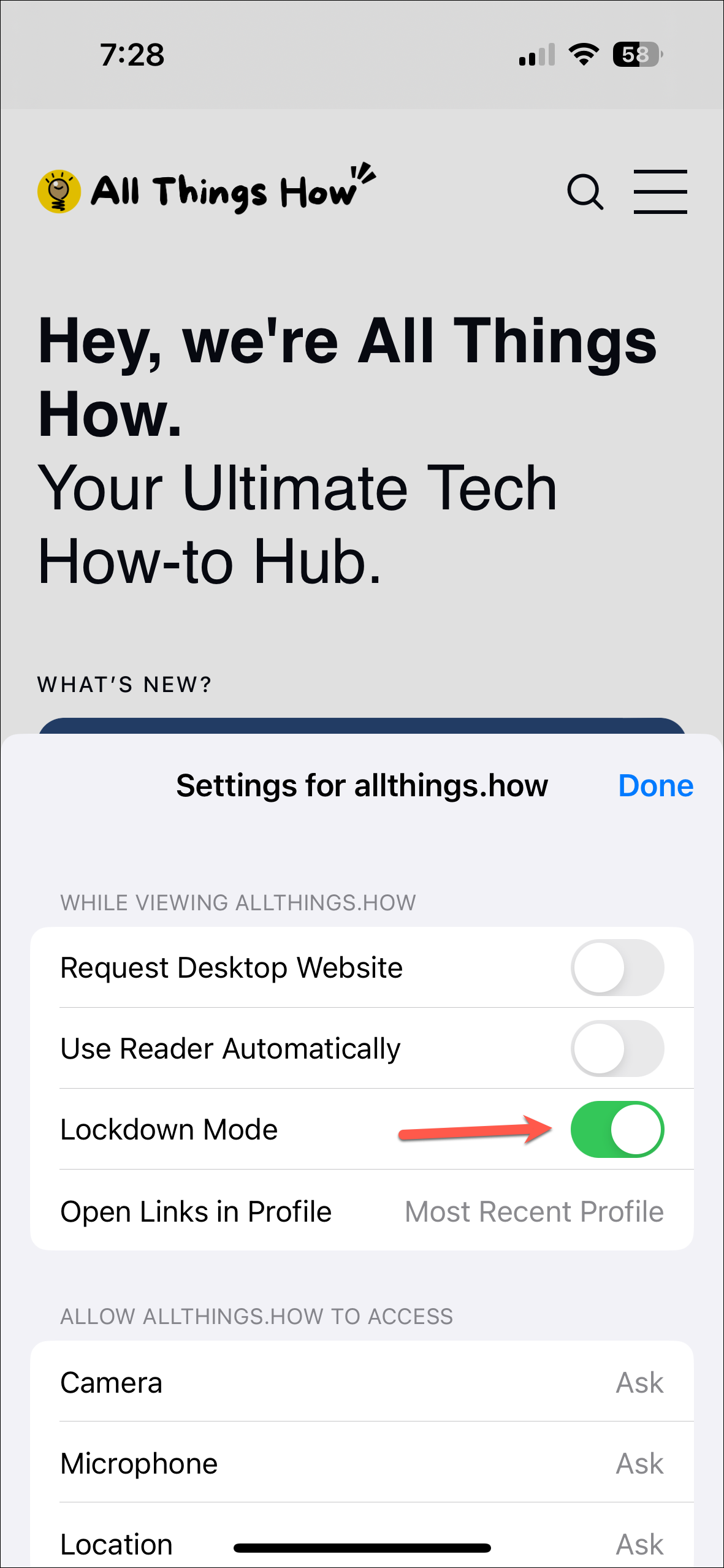 - Then, you can turn on a toggle next to a website to enable Lockdown Mode for it. This will allow you to turn off the toggle for that website anytime again.