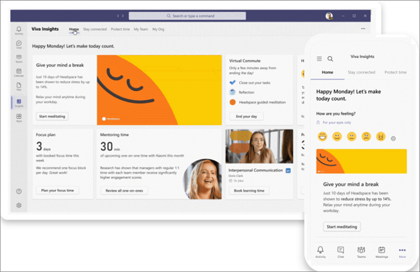 Viva Insights, as the name suggests, gives insights to the employees, managers, and organizations to thrive in such a fast paced work culture. Individual employees will receive personal insights that will assist them to be focused and work driven.