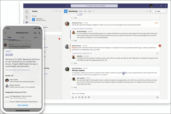 Microsoft refers to Topics as the Wikipedia of a company. It uses artificial intelligence to collect and organize content into appropriate categories. It also surfaces topic cards over things employees may be unfamiliar with. In case an employee click on one, it displays documents, videos, and related people.