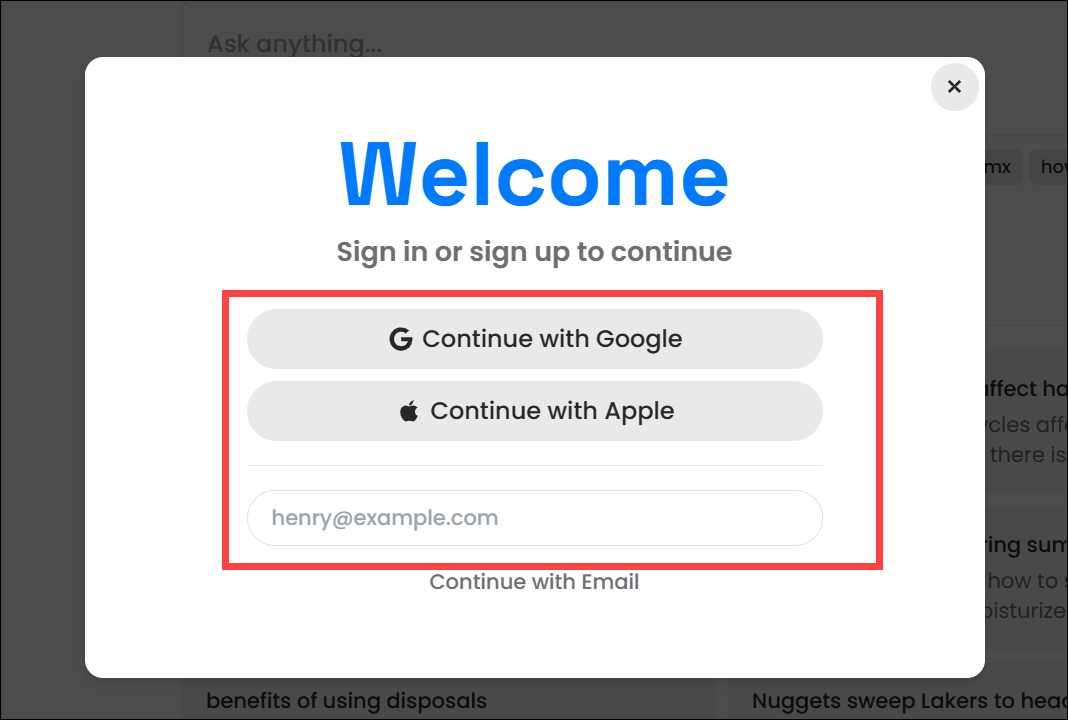You can sign up quickly using your Google or Apple accounts or use your email address. We used Google to sign up for the service so there were no other steps required.