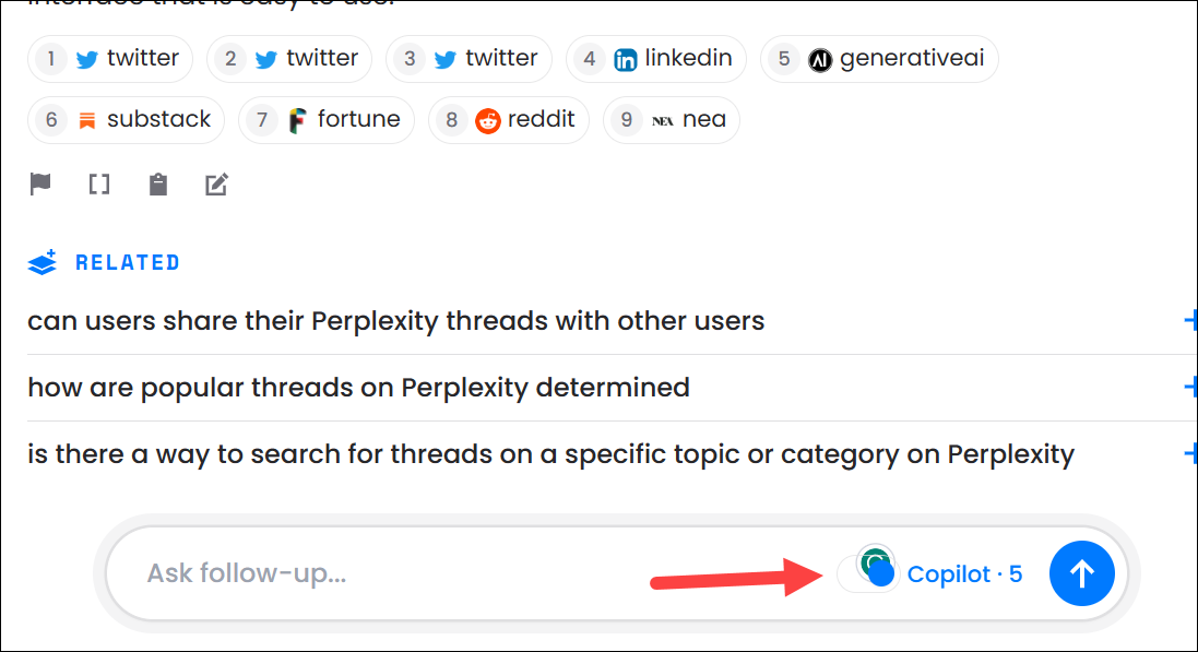 You can also ask follow-up questions. If you still want to use GPT-4 for the follow-up question, keep the toggle for Copilot on. Otherwise, turn it off as there is a limited quota.