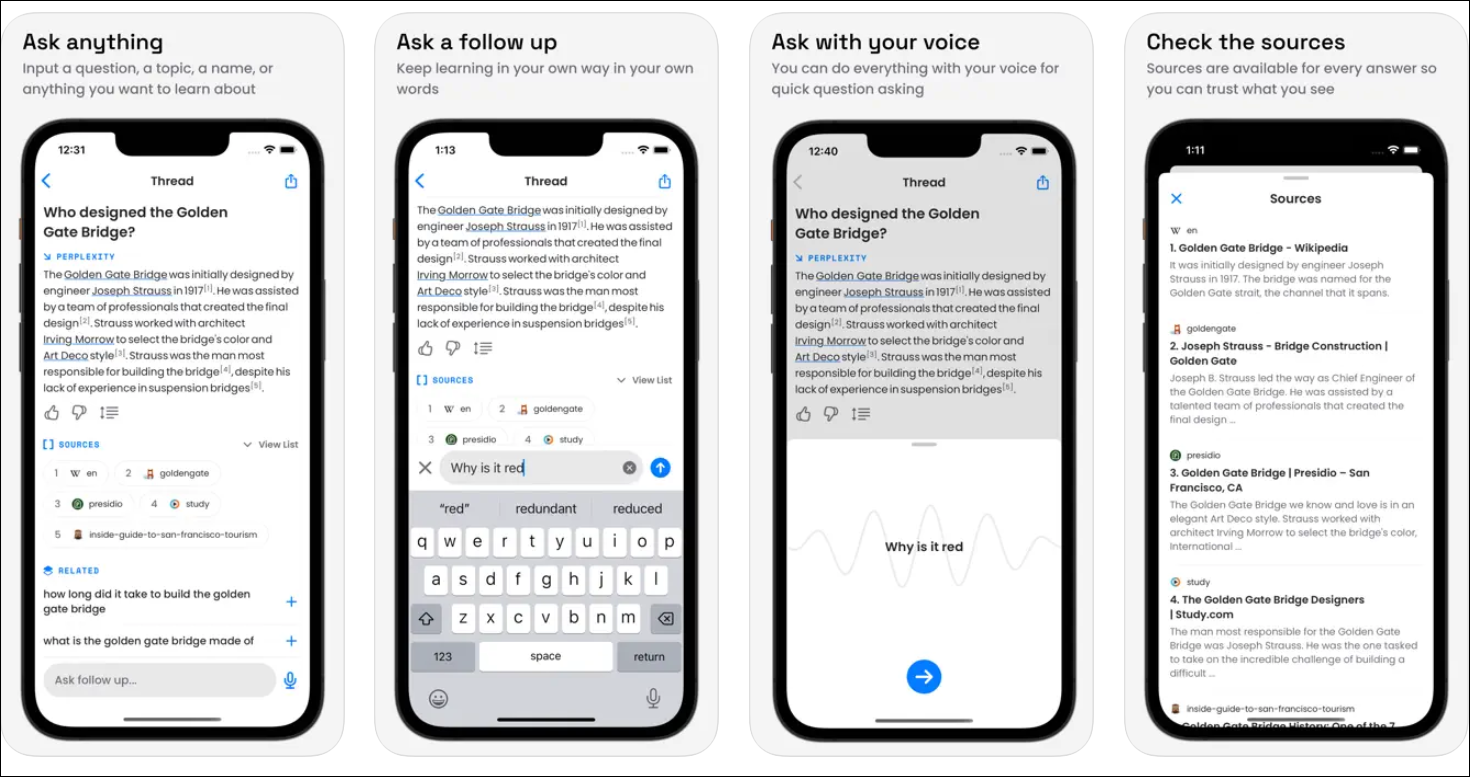 The iPhone app also features voice search, along with all the other features like thread history, follow-up questions, delete threads, etc., that you get on the web app.
