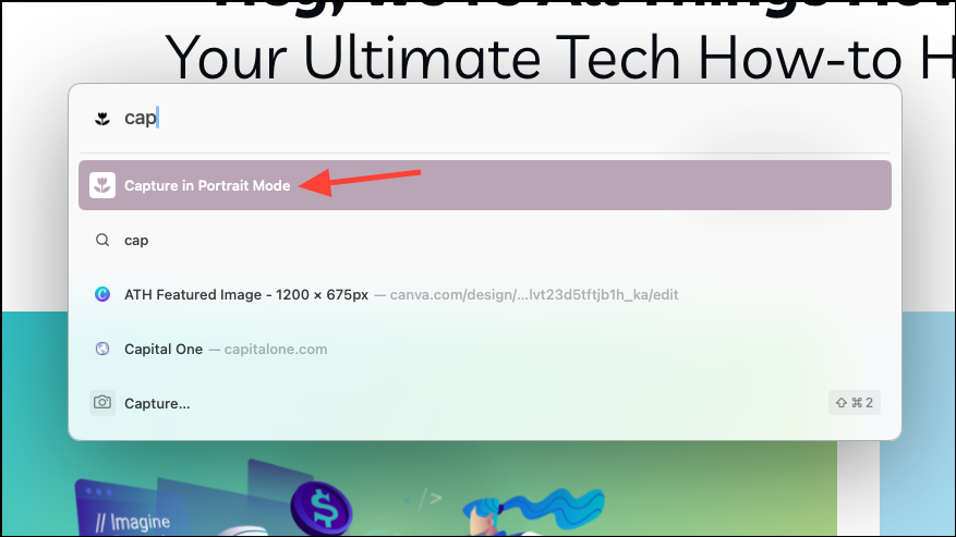 Cmd+Tkeyboard shortcut, type 'Capture in Portrait Mode' in it, and press 'Enter'.