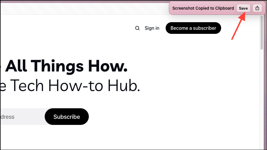 - The screenshot will be copied to the clipboard. You can either go paste it where you want to send it. Or you can click on the 'Save' or 'Share' from the Capture notification.