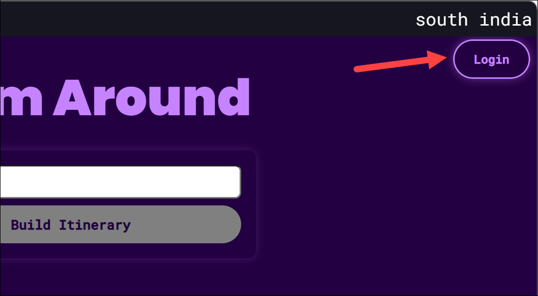 Using the app to generate a travel itinerary is a simplistic task. Go to the roamaround.io website from any browser. You don't even need to create an account if you don't want to. But if you want to save the itineraries so you can refer them at any time, you should log in. Click the 'Login' button in the top-right corner.