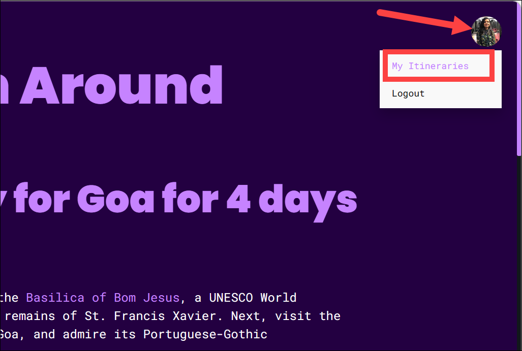 Additionally, you can find all your itineraries in your account. Click the account icon in the top-right corner and select 'My itineraries' from the options.