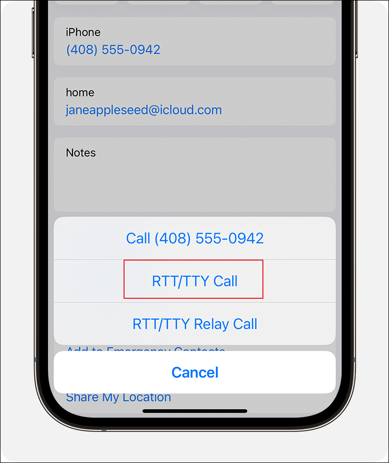 - Tap on the 'RTT/TTY Relay' or 'RTT/TTY Call' option.