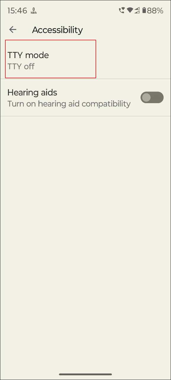- You will get two options on the Accessibility page - TTY Mode and Hearing Aids. Tap on the first option.