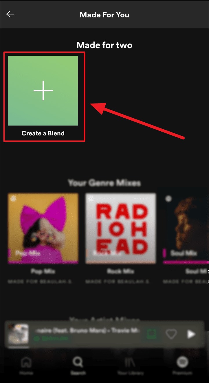 The first block in the ‘Made for You’ page will be the ‘Made for two’ block called ‘Create a Blend’ with a big plus (+) mark on it. Tap this block.