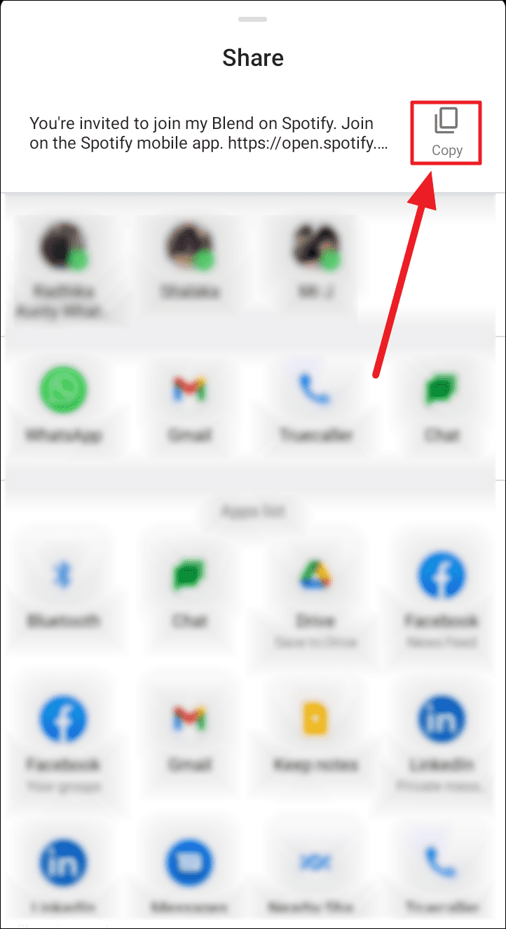 If both, the contact and the app aren’t on the ‘Share’ page, tap the ‘Copy’ button. Now you can simply paste the invite link in any social networking space of your choice.