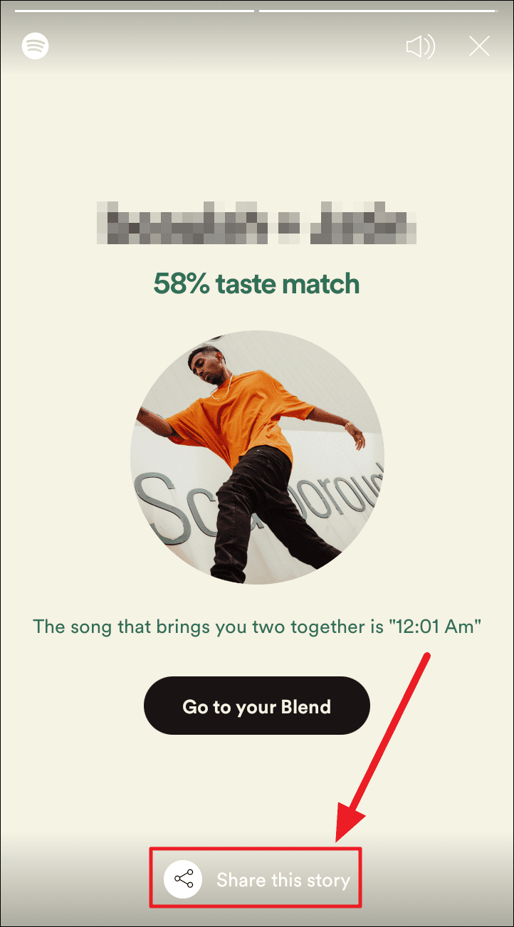 Spotify makes a Blend story for each Blend duo. This two-slided story is an overview of the similarities between your musical tastes and the music/song that brings you two together. There are two ways to view the Blend Story.