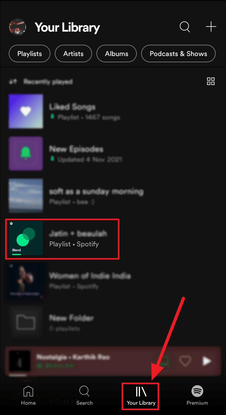 Launch Spotify and tap ‘Your Library’. Since the Blend playlist is liked by default, it would be part of your library and you will find it here.