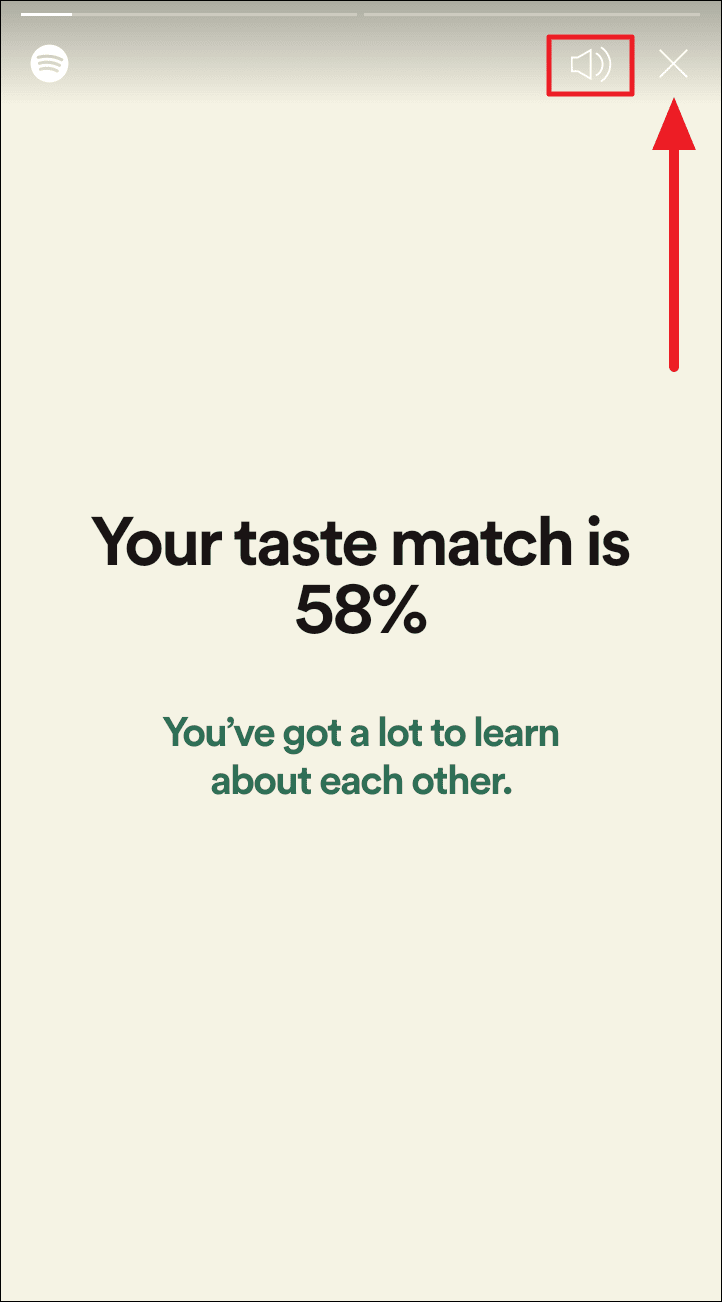 You will now see two slides of a story. One slide shows the percentage of your musical similarities and how much you can learn from each other.