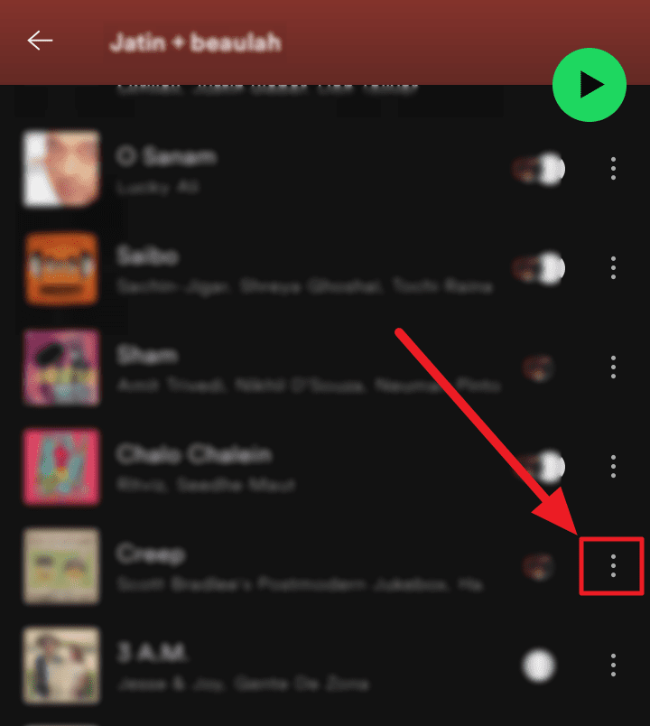 If you seem to not like a song on the Spotify-suggested Blend playlist, you may not be able to remove it, but you can hide it. Reach the song you want to hide and tap the ellipsis icon (three vertical dots) next to it.