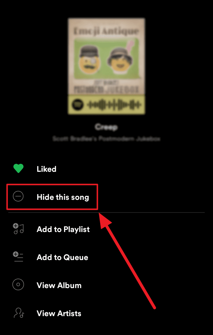 Now, choose ‘Hide this song’ from the upcoming menu.