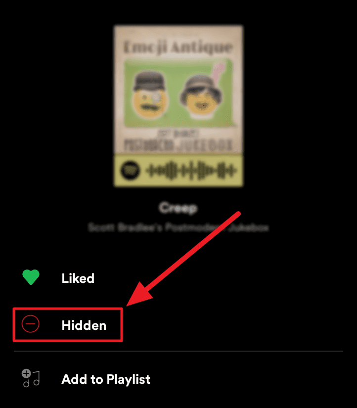 If you missed the chance to undo, you can always unhide a song by going back to the song’s menu and choosing the ‘Hidden’ option in red.