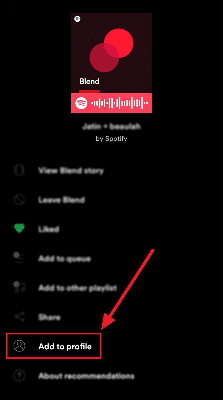 You can also display your Blend playlist on your profile. Remember, it will be on public display. Your followers and anyone who looks you up on Spotify will see the playlist.