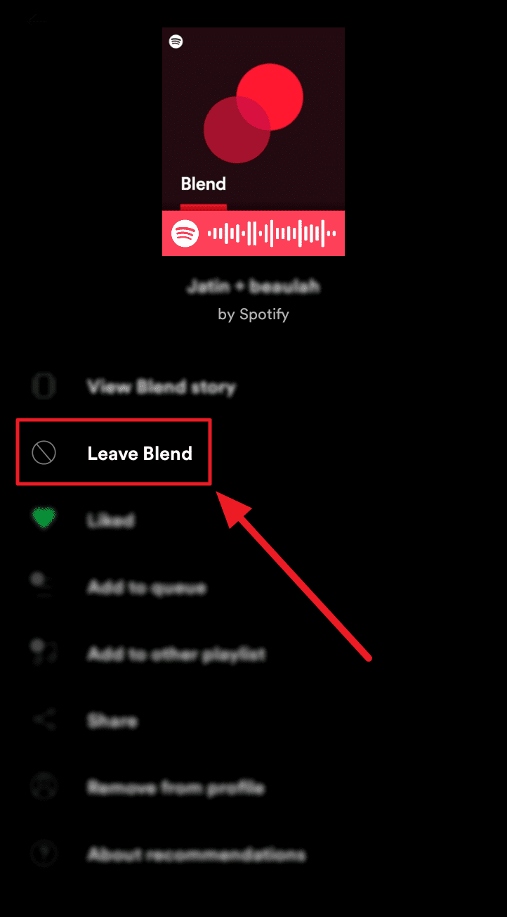 Remember, this is a two-person playlist. Leaving the blend would technically cancel the playlist for both parties. You’ll need to send the Blend invite again if you wish to create a new Blend playlist with the same person.