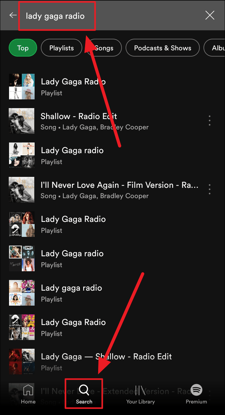 So, take out your phone, hit the ‘Search’ button (magnifying glass icon) at the bottom of the screen, and specify the artist, song, or playlist radio in the search field.