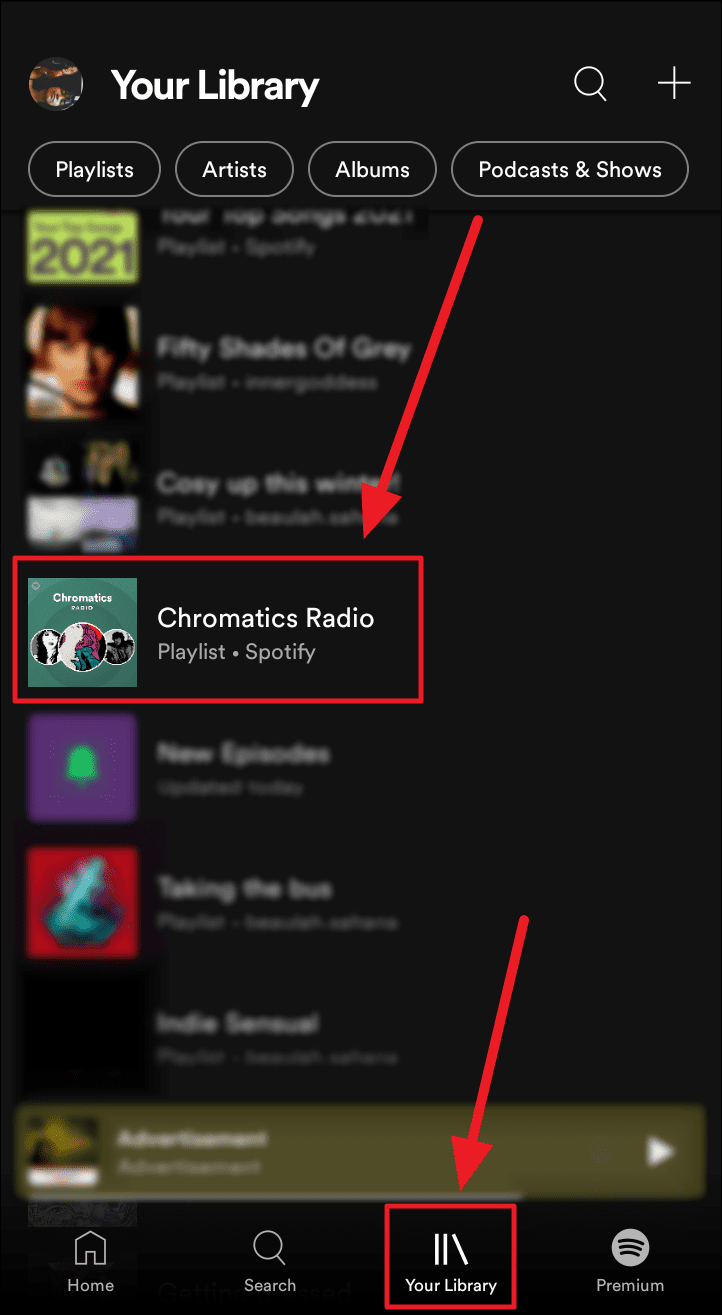 To find the saved radio playlist on your phone, launch Spotify, and click the ‘Library’ button to the bottom of the screen. You will find the newly saved radio playlist here.